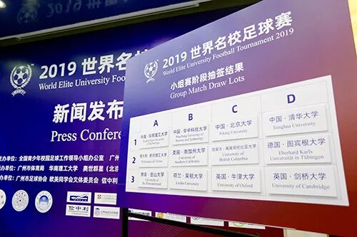 近日,由全国青少年校园足球工作领导小组办公室、广州市人民政府、清华大学、华南理工大学共同主办,广州市体育局、华南理工大学、奥世群星(北京)文化传播有限公司、足球频道承办的2019世界名校足球赛,本月将在华南理工大学五山校区举行,共有来自国内外12所高校参加,分别为英国剑桥大学、牛津大学、美国南加州大学、加拿大英属哥伦比亚大学、德国图宾根大学、荷兰莱顿大学、意大利都灵理工大学、南非金山大学、清华大学、北京大学、华中科技大学和华南理工大学。广州市体育局副局长谭爱英出席发布会并为本届比赛抽签。